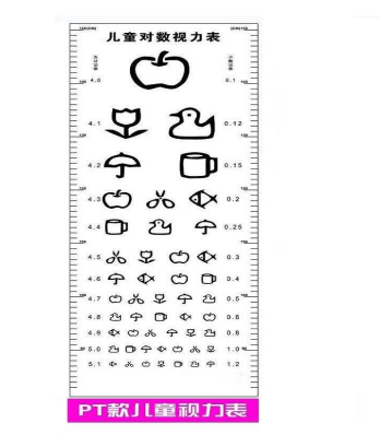 通过卡通图形进行视力检查,适用于语言表达能力好但不能指认“E”字表的幼儿。