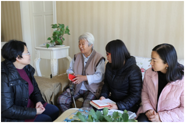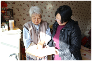 “送学上门”的支部书记李世红翻开读本,将读本上的重点内容耐心细致地读给老人听,和老人交流学习十九大精神。李老说“从十九大报告中,我看到了一个更加繁荣富强的祖国。”