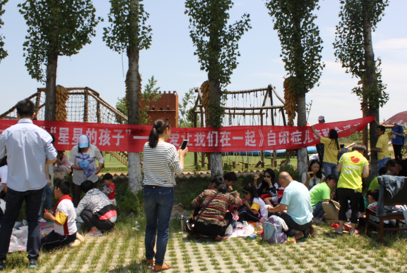 2016年5月18日上午,红宝石官方网站hbs备用儿童保健科联合西安市莲湖区智慧岛儿童培训中心、金泰假日花城小学学生及小蜜蜂青少年职业体验中心共4家单位在环山路北大商会南佛生态园开展了一项针对特殊儿童的融合教育活动。