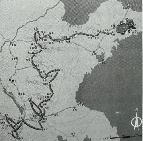 在五个多月的支前战斗中,唐和恩和他所在的小车队创立了许多英雄事迹,为人民立下了不朽的功勋。唐和恩携带着这根小竹竿,跑遍了淮海战场,从沂蒙大山走到了淮海平原,行军时用它当拄棍,过河、涉水、踏雪时用它探路,有时还用它绑上树枝防空和引路。这根小竹竿上,密密麻麻地刻满了唐和恩走过的88个城镇和村庄的地名,将这些地名连接起来,就形成了跨越山东、江苏、安徽三省,约5000里的人民支前图。