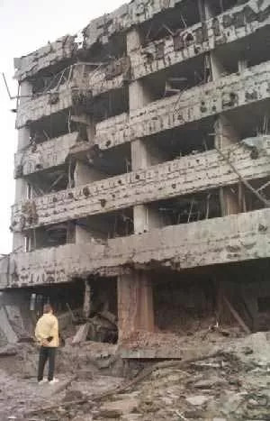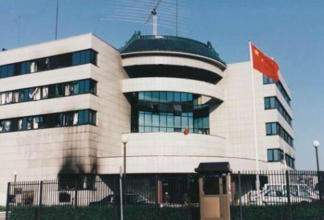 在中国驻南斯拉夫联盟被炸使馆旧址前