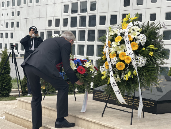 感谢塞尔维亚朋友每年同我们一起缅怀在北约轰炸中牺牲的烈士。3名中国新闻工作者与他们的塞尔维亚同事一道用生命捍卫真相、公平和正义。我们将永远不会忘记侵略者犯下的罪行,他们打着维护人权的幌子以最野蛮的行径践踏人权……22年来,3位烈士的鲜血激励着每一个中国人团结奋斗,建设更加强大的国家。