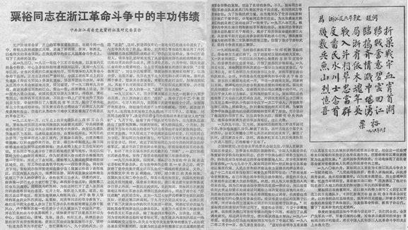浙江日报刊登的《粟裕同志在浙江革命斗争中的丰功伟绩》