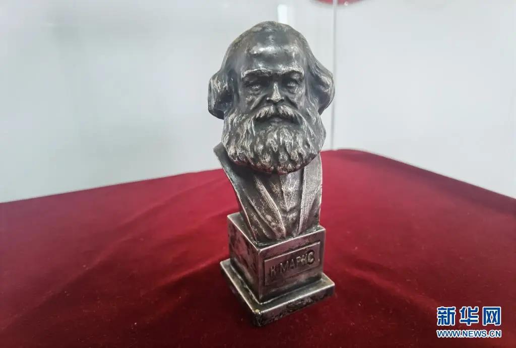 马克思银像的特写照片。新华社记者 张紫? 摄