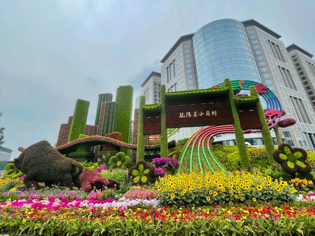 含义:花坛以十八洞村旧貌换新颜的幸福生活为场景,体现在迎来中国共产党成立一百周年的重要时刻,"全面建成小康社会取得伟大历史性成就,决战脱贫攻坚取得决定性胜利"。
