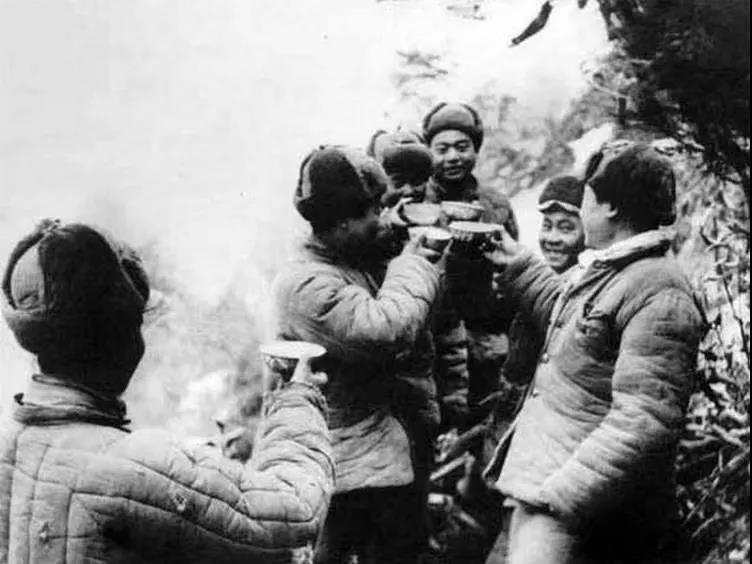 照片中,志愿军战士们面带笑容