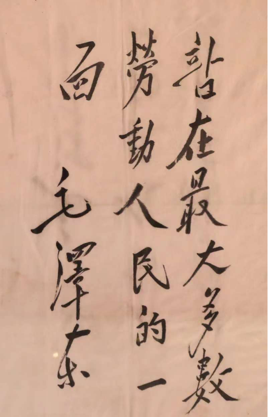 图为毛泽东同志1947年10月给中共佳县县委的题词:“站在最大多数劳动人民的一面”(复制件)。延安革命纪念馆供图