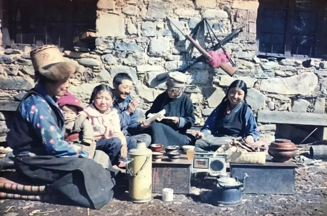 20世纪90年代,卓嘎(右一)央宗(左一)与父亲桑杰曲巴