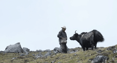 曾多次参与巡边任务的格林村村民桑杰达瓦在自家的茶园中。绰号“好人”的桑杰达瓦腰间别着一把门巴族的传统砍刀,象征着该民族以打猎为生的历史。