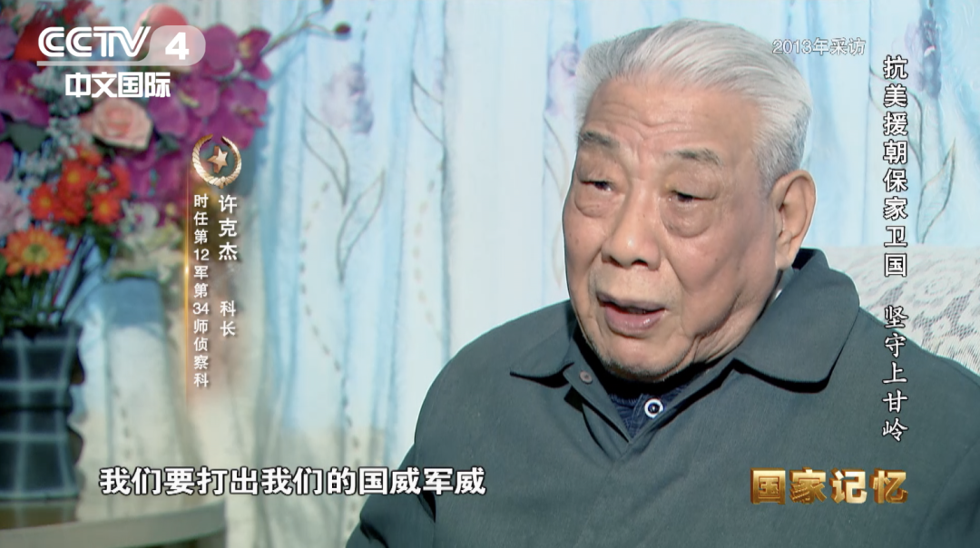 时任第12军第34师侦察科科长许克杰:我们部队上去以后,向15军学习,在英雄阵地上,我们要打出我们的国威军威。