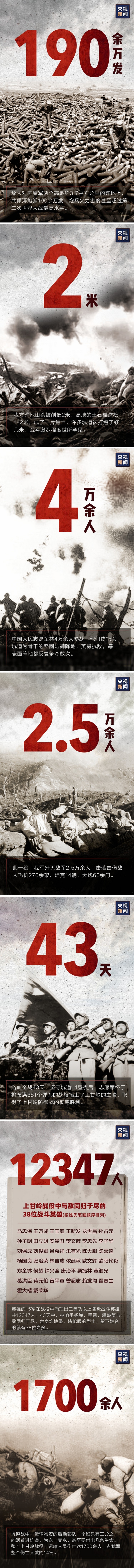 上甘岭一战历时43天,志愿军伤亡12347人,顽强守住了阵地。