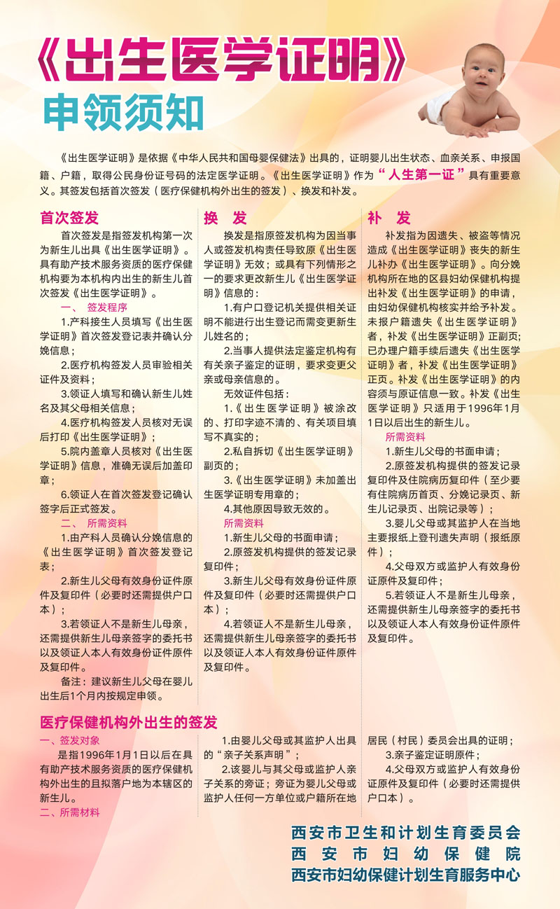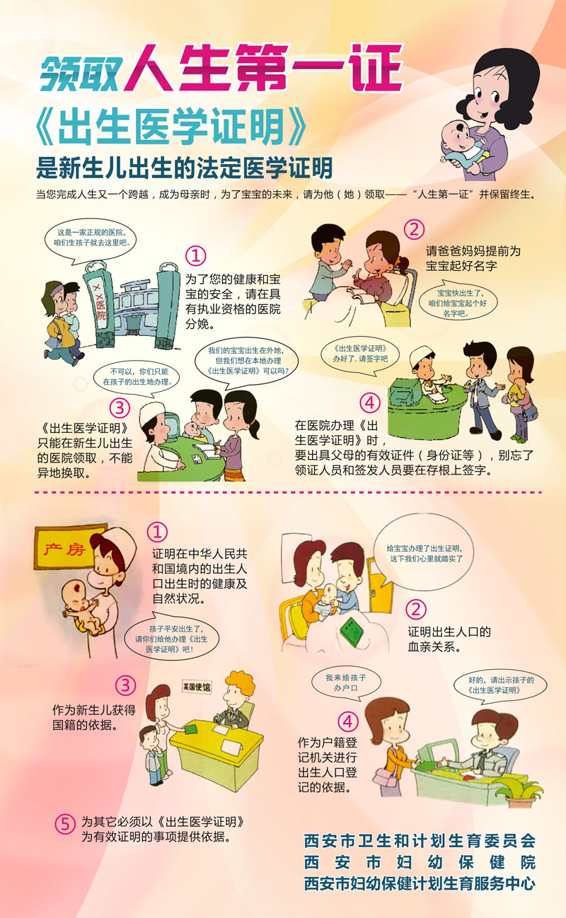 近期,红宝石官方网站hbs备用为全市各助产医疗保健机构印制了《出生医学证明》“人生第一证”、申领须知宣传画400余套。宣传画形象细致地介绍了《出生医学证明》的用途和首签、换发、补发及医疗保健机构外出生签发流程,目的在于让广大群众进一步了解《出生医学证明》的重要性及申领过程中需要注意的事项。