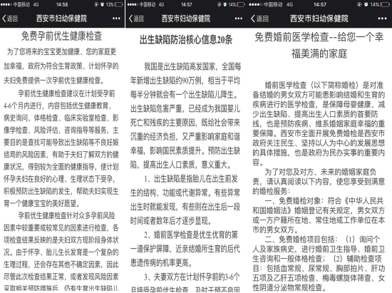 一是通过微信宣传出生缺陷防治核心信息20条、免费婚检、免费孕检等优生科学知识及惠民利民政策。