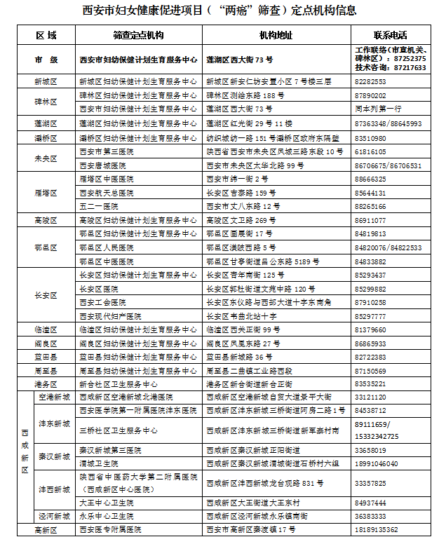 非西安市户籍的姐妹也不用担心,只要你在西安市常住或工作单位在我市,也可以在市妇幼保健计划生育服务中心享受免费的两癌筛查。