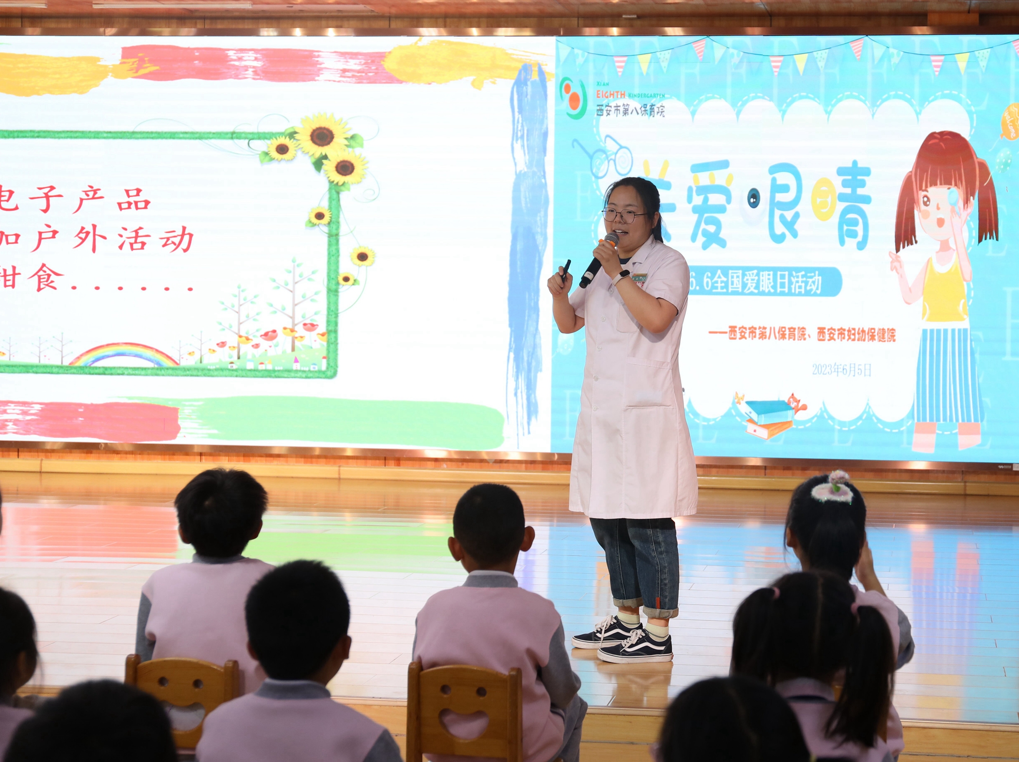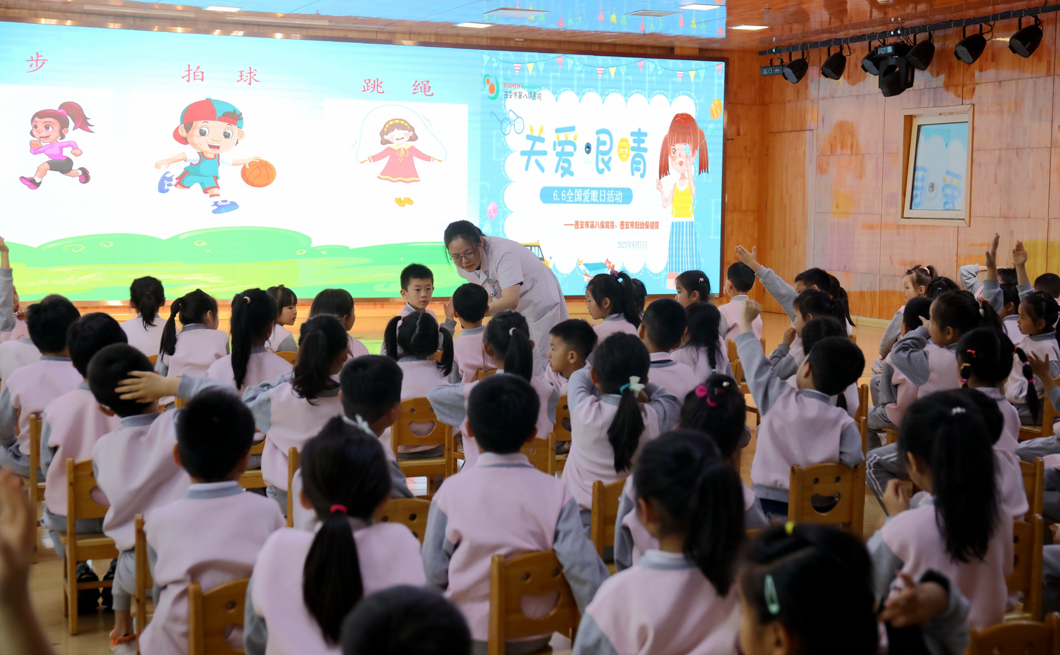 6月5日,全国爱眼日前夕,红宝石官方网站hbs备用为西安市第八保育院学龄前儿童开展了以“保护视力,科学用眼”为主题的爱眼日科普知识活动。活动期间,眼科视光师张璐为小朋友们讲解了眼睛的发育特点和预防近视的举措,例如多参加户外活动,眼保健操的操作方法、高度近视的危害。在提问互动环节中,小朋友们踊跃举手积极回答问题,现场气氛高涨。