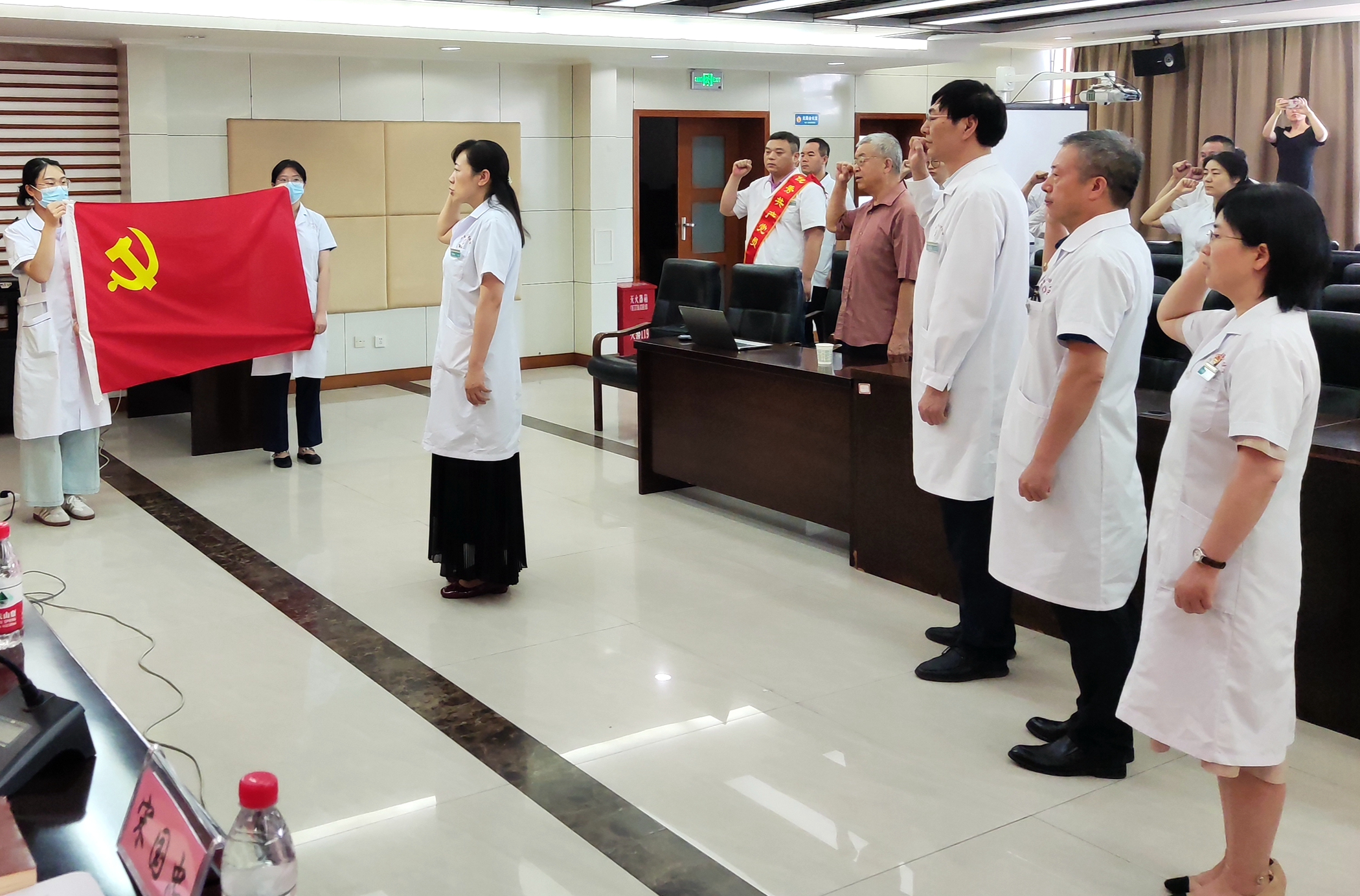 庆祝大会在激昂雄壮的国歌声中拉开序幕,党总支书记郝晓云带领全体党员重温入党誓词,为“光荣在党50年”老党员颁发了纪念章,院长宋国忠带领班子成员为获得荣誉的优秀共产党员、优秀党务工作者、先进基层党支部颁发了荣誉证书,并代表医院全体职工向获奖个人和集体表示祝贺,向各党支部和全体共产党员,致以节日的慰问。