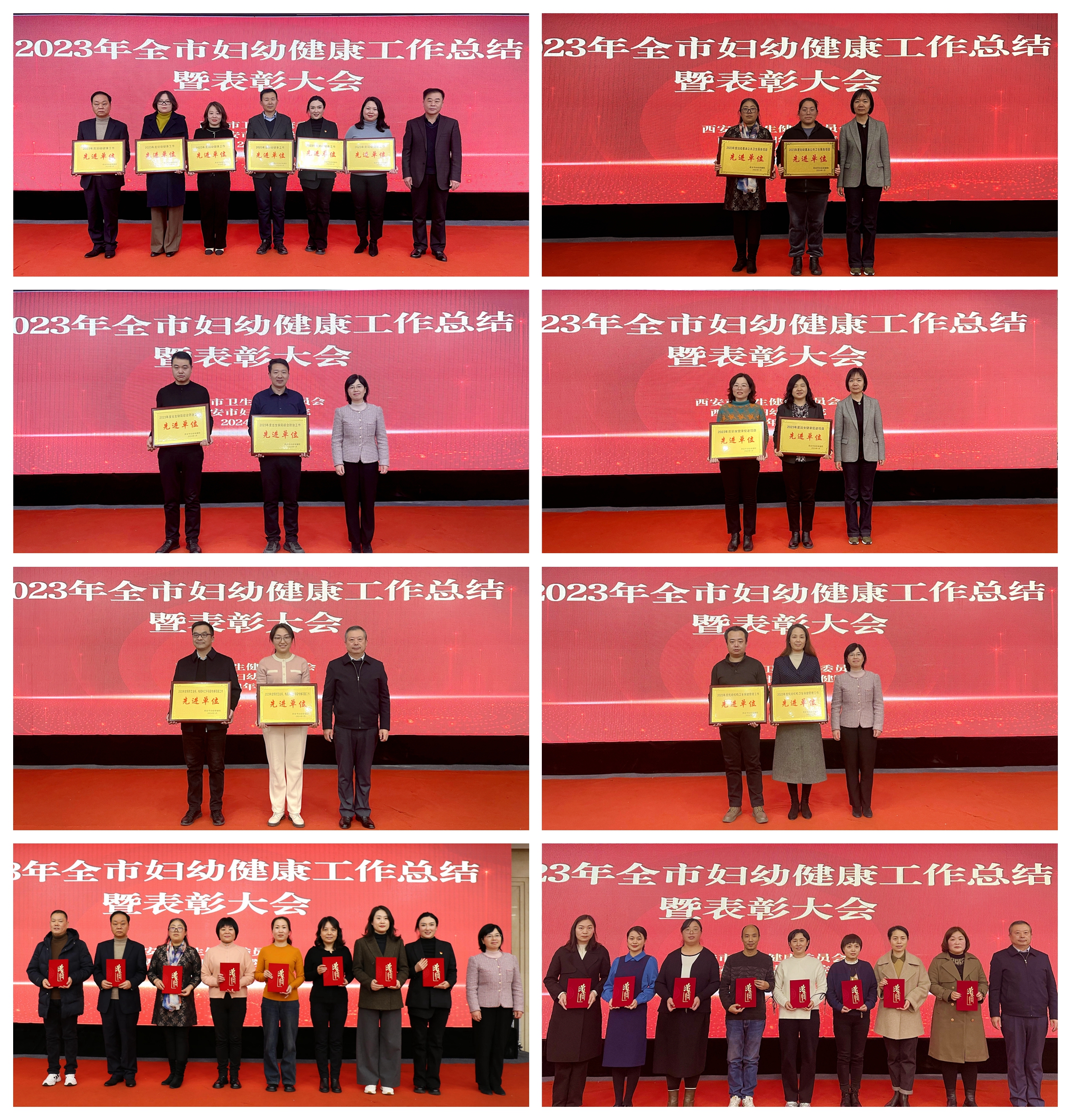 市卫生健康委妇幼处处长李琛宣读了2023年度妇幼健康工作先进单位及先进个人的表彰文件。参会领导为受到表彰的先进集体和先进个人颁发奖牌和证书。