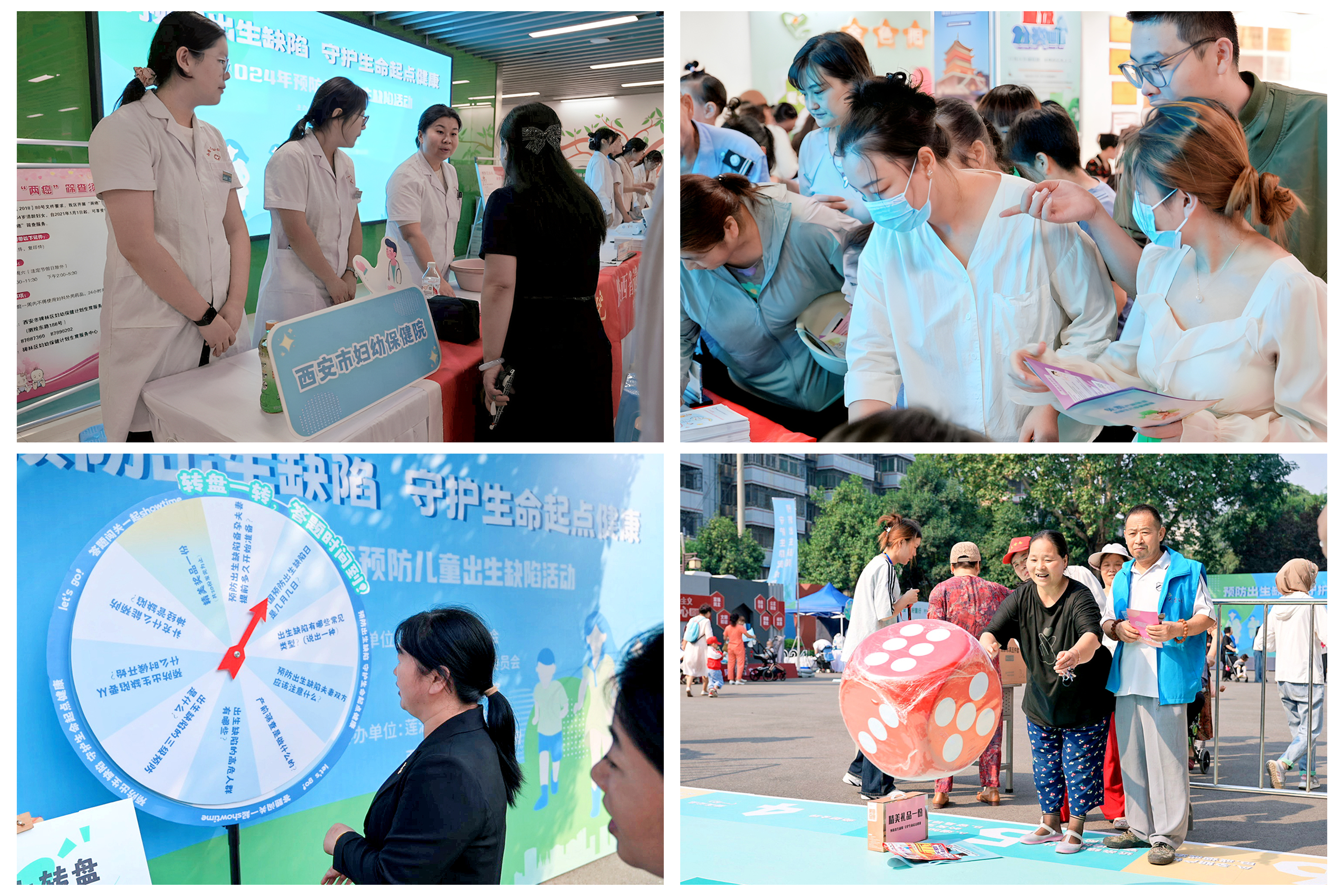 市妇幼保健院携手省妇幼保健院、碑林区妇计中心、新城区妇计中心、雁塔区妇计中心、高新区疾控中心、莲湖区妇计中心,以及莲湖区10家社区卫生服务中心和4家助产医疗机构,通过悬挂横幅、展示科普知识展板、设立义诊宣传咨询台、分发健康知识宣传资料、开展线上答题及趣味活动等多种形式,向民众普及优生优育、科学育儿、婚检孕检、增补叶酸、免费“两筛”等出生缺陷综合防治的惠民政策及科普知识。医务人员耐心为民众解答疑惑,重点强化高龄、高危再生育夫妻的风险防范意识,切实提升民众的优生观念和风险防范能力。