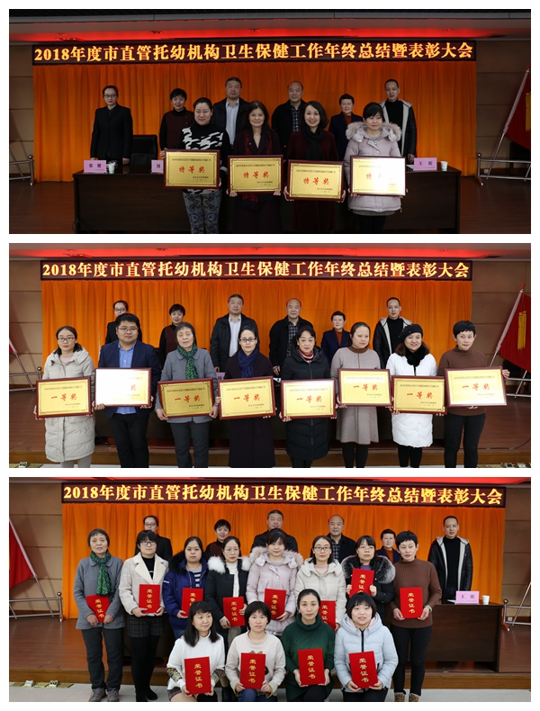 会上,市妇幼保健院张水平副院长对2018年度直管卫生保健托幼机构卫生保健工作年终督导检查情况进行了通报。市妇幼保健院书记刘菁宣读了2018年度直管卫生保健托幼机构卫生保健工作先进单位及先进个人的表彰决定。与会领导向卫生保健工作获奖单位和先进个人颁发了荣誉奖牌和荣誉证书。