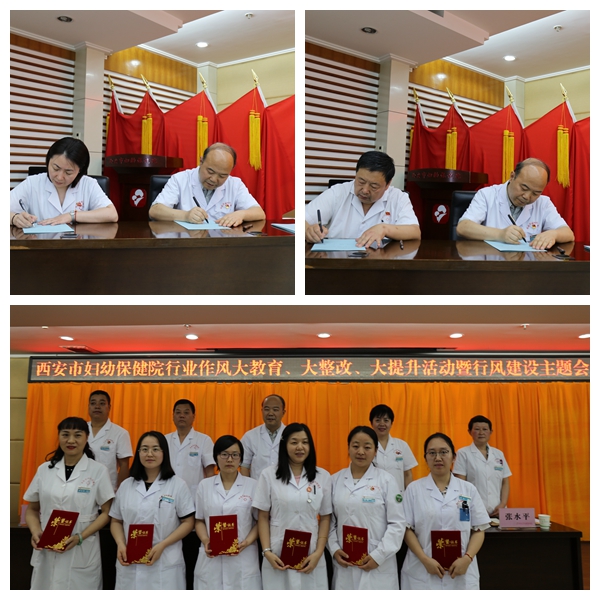 会议由王耀华副院长主持,成小勇副院长组织全体医务工作人员学习了行风建设九不准、医疗机构从业人员行为规范、《刑法修正案第(九)章》和省市卫健委《加强妇幼保健机构医疗质量安全管理工作》要求,张水平副院长宣读了《红宝石官方网站hbs备用行业作风大教育、大整改、大提升活动实施方案》并就行风建设工作进行了安排,刘菁书记宣读了《红宝石官方网站hbs备用关于表彰2019年度“岗位明星”和“服务标兵”的通报》,院领导还为岗位明星、服务标兵颁发了荣誉证书。叶世辉院长带领全体医务人员面对“职业精神墙”进行大宣誓,同时与科室代表签定了2019年度行风建设责任书。