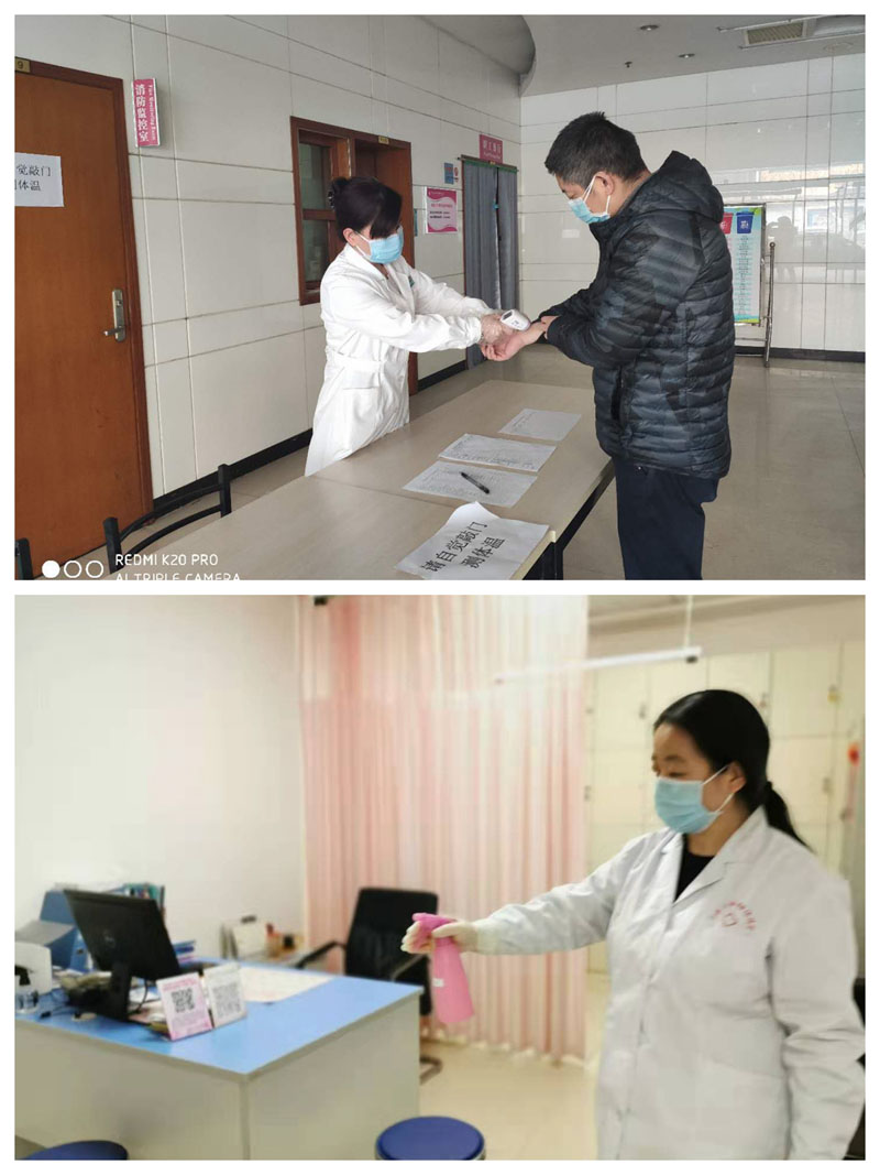 抗击疫情我们全院上下一盘棋。叶院长亲自挂帅,指导医院疫情防控工作,领导班子成员及时沟通,深入研判分析形势,科学精准把握疫情,适时调整医院防控方案,确保了院内诊疗活动和疫情防控工作的正常开展。医务科、科教科、护理部、药械科、设备科、总务科等相关职能部门,齐心协力、并肩作战,体现了高效的执行力。上级精神传达到位、新冠肺炎防控知识人人知晓、防疫物资供应正常、院内环境一日两次全方位消毒、建立职工通道、严格落实预检分诊制度、实施职工科室分散就餐,院内的各项防控措施做到了密不透风,铁桶般严密。此时此刻我们比任何时候都团结,比任何时候都友爱,因为我们是一家人,因为我们是为医者。