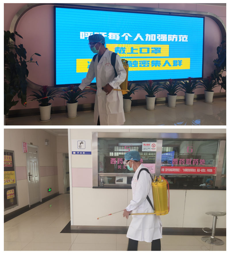 每天下班以后总务科安排全院上下进行消毒以防止交叉感染。
