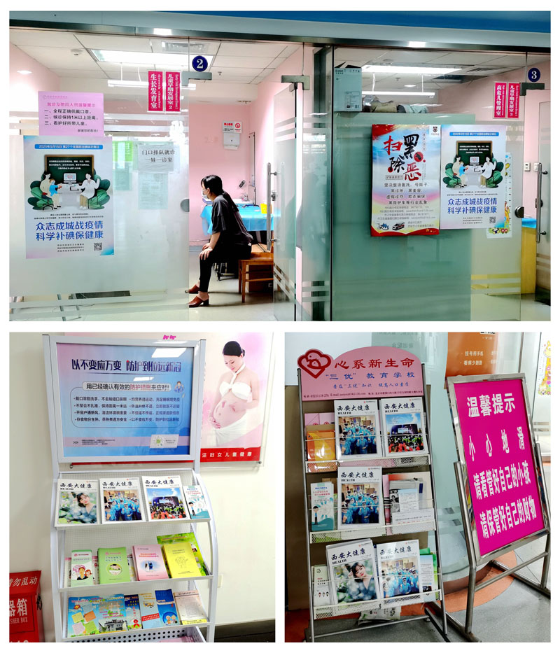 新冠疫情期间避免人员聚集,本次防治碘缺乏宣传活动主要以LED屏幕播放及宣传书架投放资料为主,医务人员共张贴宣传画5张,投放健康教育知识读本100余份,开展患者咨询的同时,积极向群众宣传碘缺乏的危害、碘缺乏的预防以及注意事项等。并结合市妇幼的实际情况,着重向儿童家长及孕产妇宣传碘缺乏的危害性。此次活动获得了家长和患者的好评,提高了大家对碘缺乏病防治工作认识,对提升大众的健康意识起到了良好的推动作用。