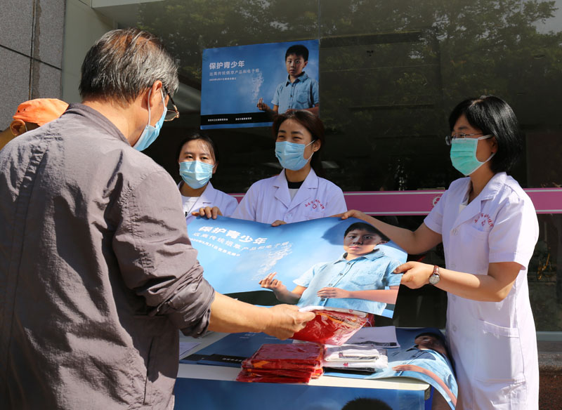 5月29日,在第33个世界无烟日来临之际,红宝石官方网站hbs备用在一楼门诊大厅门前开展了以“保护青少年远离传统烟草和电子烟”为主题的控烟宣传活动。